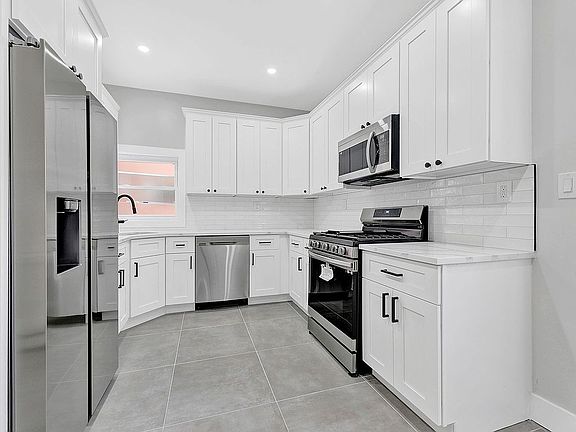 Expansive sun-drenched Spacious Living Room which provides great space for entertaining. Formal dining area leads into stunning quartz countertop Eat-In-Kitchen any chef will love. Kitchen features floor to ceiling custom cabinetry, adorned with full-sized stainless-steel appliances & leads out into lush rear yard. 1/2 bath on first floor for your guest.