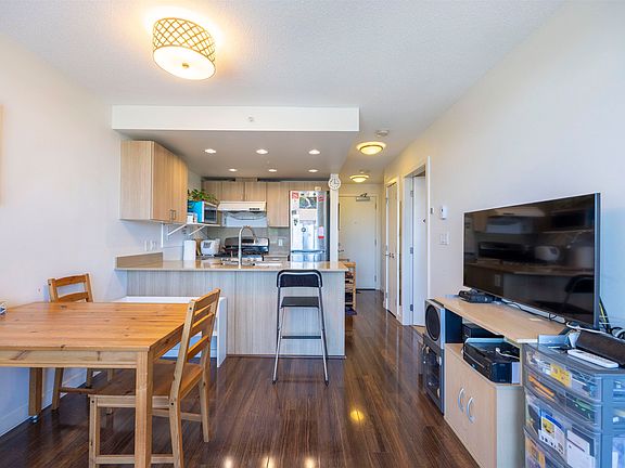 Welcome to the centrally located Skyline Residences – this well-designed 1 bedroom + den + flex room condo offers stunning city and mountain views from your spacious living area. The bright den is ideal as a reading nook or study, while the flex room provides the perfect space for a home office or extra storage. Enjoy a sleek gourmet kitchen featuring a gas cooktop, stainless steel appliances, and a convenient breakfast bar. Unwind in the spa-inspired bathroom with a deep soaker tub and elegant tile finishes. Residents enjoy access to top-tier amenities including a fitness centre, party lounge, and rooftop garden. Steps to the SkyTrain, local shops, dining, parks, and top schools. Includes 1 secure parking stall and a large storage locker. Book your private showing today!
