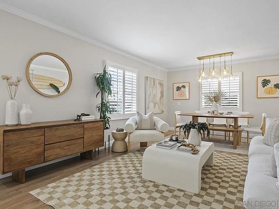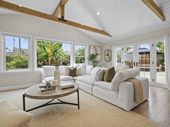 Welcome to this stunning, extensively upgraded 4 bedroom, 2 bathroom retreat in the highly sought-after Mount Streets of Clairemont neighborhood. As you step into this tropical oasis, you'll be greeted by the warmth and serenity of the lush landscaping, complete with a sparkling pool and outdoor rock sauna - the perfect setting to unwind and relax. The interior of this beautifully maintained home is just as impressive, with a vaulted tongue-and-groove family room that boasts a large fireplace and French doors leading out to the expansive outdoor patio. The sleek, modern aesthetic continues with laminate flooring throughout and stunning granite countertops in the kitchen. Custom built-ins throughout the home, featuring a California Closet walk-in conversion of the 4th bedroom (removable if necessary). Conveniently located walking distance to Mt Etna Park and within the boundary for top ranked schools. But what truly sets this property apart is its commitment to sustainability and energy efficiency. The owned 7.41 kW solar panel system and tankless water heater ensure that you'll be saving money on your utility bills while also reducing your carbon footprint.