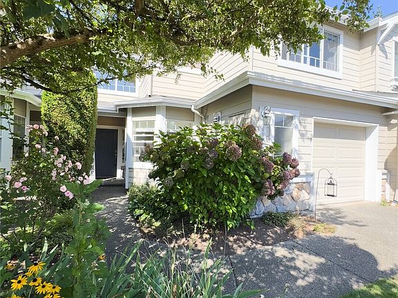 Truly a wonderfully bright and airy home with perfect floor plan. Main floor European oak hardwood floors lead you through to the main 3rd bed or den w/ closet in half bath. Large windows overlooking the garden. Spacious family room with soaring ceilings, and cozy gas fireplace lead you to dining area and updated kitchen. Tons of cabinets and counter space, and large spacious pantry. Walk out to the private patio that you can fence in. Open staircase leads you upstairs where you will find two beds with en-suite and double closets. Primary has remodeled bath with walk in shower, walk in closet. Upstairs bedrooms have plush gorgeous carpet. Enjoy quiet ambiance of this Gated community!