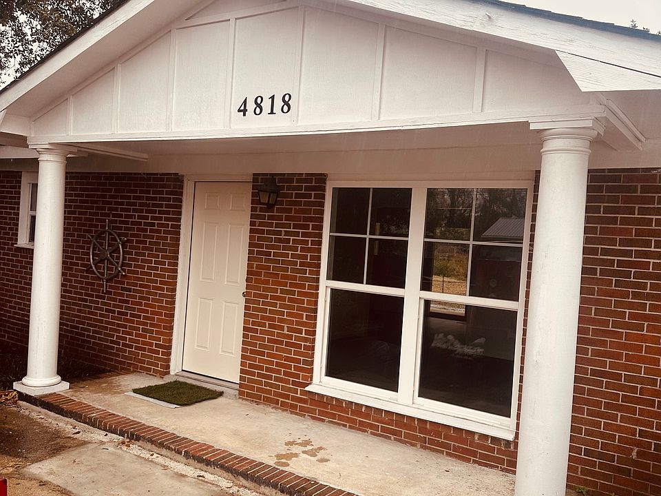 This house offers three bedrooms and one and a half bathrooms. It has been completely renovated, including the walls, ceilings, and hard flooring throughout.