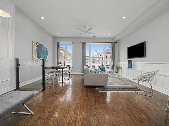 Stunning and completely remodeled 3 unit in Bronzeville. Property boasts 3 large units that have all brand new high end finishes. Top floor owners unit has beautiful designer finishes and details with an open layout and tons of natural light. This is a completely turn key property, nothing to do here. Live in the top floor unit and take advantage of 2 rental units below with excellent rental income coming in. This can also be a luxury rental investment property to add to your portfolio in an appreciating area. Each unit comes with brand new beautiful SS appliance packages, new kitchens, quartz counters, new bathrooms, washer dryer in unit, hardwood flooring, new plumbing and electrical fixtures, new windows, new HVAC and more. Quaint back yard area perfect for summer cookouts. There is a 3 car parking pad in the back of the property. One of the top blocks in Bronzeville.