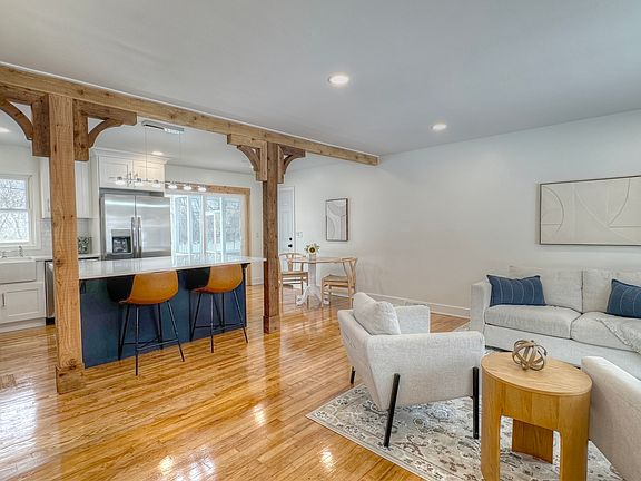 Farmhouse sinkAbundant natural lightFully renovated kitchenMassive center islandExpansive backyardAll-new stainless steel appliancesCustom cedar beams