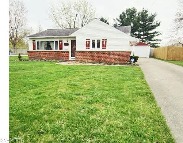 Move-in ready ranch nestled on a fantastic 75x193 lot with no rear neighbors! Interior is neutral and clean! Laminate wood flooring in the living spaces/hallway. Updated kitchen has an eating area that opens to the living room. Updated bathroom. Laundry room with built in cupboards for additional storage. 2 car garage. Vinyl sided exterior with attractive front with brick & shake accents. Culdesac street near conveniences! Great opportunity for updated, clean & move in ready under $100k in North Ridgeville!