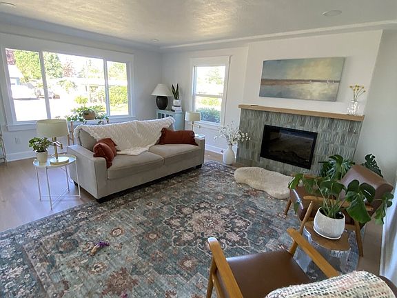 Welcome home to Trillium Cottage, this fully remodeled mid-century ranch is located on an almost quarter acre corner lot in charming Minehaha neighborhood, walking distance to schools and shops. Every detail of this 1125 square foot gem has been painstakingly reimagined with designer touches throughout while maintaining its mid-century style. It boasts all new electrical, plumbing, HVAC, PUD Weatherization, energy efficient vinyl windows, exterior doors, new driveway and patio, fully fenced yard, rose garden and room for RV parking.This home features a large cooks eat-in kitchen with high end stainless appliances, ample storage, butlers pantry/laundry/mudroom, two large bedrooms, large main bath with tiled tub/shower and brushed gold accents. The large light filled living room features the original coved ceiling, cozy fireplace with designer tile and custom mantel. Stepping outside there is a new patio surrounded by new lawn, brick accents, fully fenced, with large gates for RV parking along the side. The large front and side yard feature mature landscape and rose garden with plenty of space for ADU, shop or play yard.