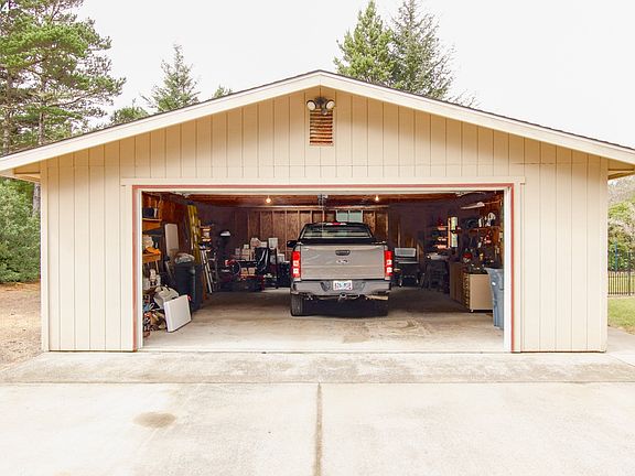 Welcome to your perfect coastal retreat! Nestled on a serene flag lot, this charming property offers the ideal blend of privacy and convenience. Situated on a spacious .41-acre lot, this home boasts 1458 sq ft of comfortable living space, featuring 2 bedrooms and 2 bathrooms. Step inside to discover a cozy ambiance accentuated by a wood stove, creating a warm and inviting atmosphere during chilly coastal evenings. Modern comfort is ensured year-round with the inclusion of a ductless heat pump, providing efficient heating and cooling throughout the home. For those with hobbies or storage needs, a two-car detached garage offers ample space, while RV and boat parking provide additional convenience for outdoor enthusiasts. The expansive yard offers plenty of room for outdoor activities and relaxation, complete with a fenced backyard for added privacy and security. Enjoy outdoor dining or lounging on the back deck, perfect for soaking up the coastal sunshine. Green thumbs will appreciate the greenhouse, providing a space to cultivate plants year-round. Additionally, you'll enjoy that being in Florence gives you convenient access to beaches, dunes, lakes, & river recreation, as well as shopping, dining, and entertainment. Whether you're seeking a peaceful retreat or a home base for coastal adventures, this property offers the perfect blend of comfort, convenience, and natural beauty. Don't miss your chance to make this coastal oasis your own!