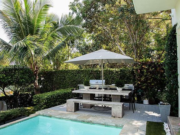Fully renovated contemporary waterfront residence in Coral Gables. This designer home offers 4 bedrooms + theater + office, combining luxury finishes with modern comfort. Bright open layout features new flooring, designer lighting, custom kitchen with high-end appliances, and seamless indoor/outdoor living. The private backyard oasis includes a new pool, dining terrace, and lush landscaping overlooking a tranquil canal. Upstairs, the primary suite boasts water views, balcony, dual custom closets, and spa bath. Additional highlights: impact windows/doors, new A/C systems, smart-home controls, fully finished garage with A/C and built-ins, and private dock with direct access to the Gables Waterway. Move-in ready and minutes from Coconut Grove and Downtown Coral Gables.