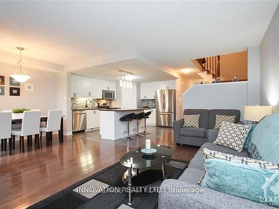 Flooring: Tile, Flooring: Hardwood, Deposit: 5298, Flooring: Carpet Wall To Wall, Don't miss this fabulous Valecraft quality 21' WIDE townhome in Kanata South backing onto GREENSPACE with 2025 SF living space and a premium lot with extra deep 133 ft yard. NO rear neighbours on quiet street, yet walk to amenities. Unique townhome features 11' wide garage. Main level features coveted open concept layout; living room, dining rm & large chic kitchen w/island, extended breakfast bar, pots & pans drawers, pantry, stylish backsplash, SS appliances. Hardwood & tile floors, neutral colours throughout. Enjoy cozy gas fireplace, views of nature outdoors & patio door leading to oversized rear fenced yard. Fabulous floor plan offers 3 spacious bedrooms, 3 baths + basement bath rough-in. Primary bedroom offers upgraded luxury 4pce Ensuite w/corner tub & separate custom tile shower. Convenient laundry on upper level. Rental Application, Photo ID, Employment Verification (2 recent salary slips), Credit Report, and Schedule B Required with Offers. No pets.