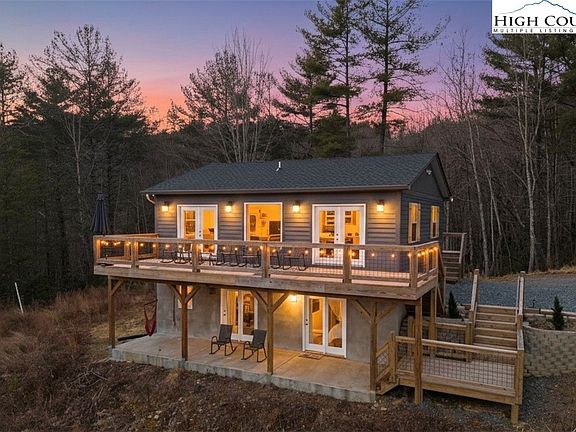 Tucked away in the serene, wooded hills of Lenoir, North Carolina, this beautifully appointed 2-bedroom (plus bonus room), 2.5-bath mountain retreat offers an exceptional blend of privacy, comfort, and year-round appeal. Framed by lush forest and sweeping mountain views, the home is perfectly suited as a full-time residence, second home, or high-performing vacation rental investment. Designed for effortless indoor-outdoor living, expansive decks and a covered patio invite you to unwind in rocking chairs, gather around the wood-burning fire pit, or sway in hammock or saucer swing while taking in the peaceful surroundings. Entertain with ease using the charcoal grill and outdoor dining spaces, or simply enjoy quiet mornings immersed in nature. Inside, the home features a thoughtfully designed layout ideal for personal enjoyment and entertaining guests alike. The well-equipped kitchen offers modern appliances and generous prep space, flowing seamlessly into dining and gathering areas—perfect for hosting or extended stays. The bedrooms, including a primary suite with a private en-suite bath, are on the lower level, providing additional privacy. Located a short drive from some of the region’s most sought-after outdoor attractions, this property provides convenient access to hiking along the Blue Ridge Parkway, renowned trout fishing on Elk Creek, and winter sports at Appalachian Ski Mountain. With strong year-round demand and timeless mountain appeal, this is a rare opportunity to own a tranquil retreat with enduring lifestyle and income potential. House was rebuilt from the ground up and completed in 2024. Additional homesite with utility connections on the property where the fire pit is currently located. Furnishings available with few exceptions.