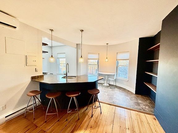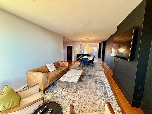 $5950! AVAILABLE NOW! This unique, extra-large three-bedroom, 2.5-bathroom penthouse condominium on Columbus Avenue offers stunning views of the historic South End church and is conveniently located near the corridor. The space boasts South End elegance with vaulted ceilings, skylights, and a spacious, sunny living room with a cozy reading nook. There's also a generous home office area, exposed brick walls, and a modern kitchen with stainless steel appliances, granite countertops, and a breakfast bar. The master bedroom features an extra-deep clawfoot soaking tub, offering a European-inspired feel. All three beautifully designed bedrooms offer ample closet space. Additional amenities include gas heating and cooking, central air, a washer and dryer, and fully staged furnishings, with the option to purchase furniture. On-site parking is available for an additional fee.