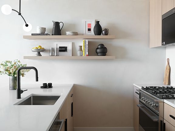 The radiant lifestyle of Williamsburg Wharf continues inside with spacious, light-filled Studio, One-Bedroom, One-Bedroom + Home Office & Two-Bedroom residences that feature oversized windows and bespoke finishes with select residences boasting dramatic views and private terraces.