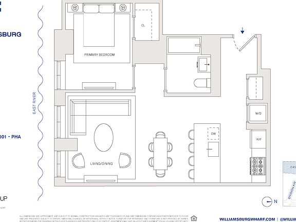 The radiant lifestyle of Williamsburg Wharf continues inside with spacious, light-filled Studio, One-Bedroom, One-Bedroom + Home Office & Two-Bedroom residences that feature oversized windows and bespoke finishes with select residences boasting dramatic views and private terraces.