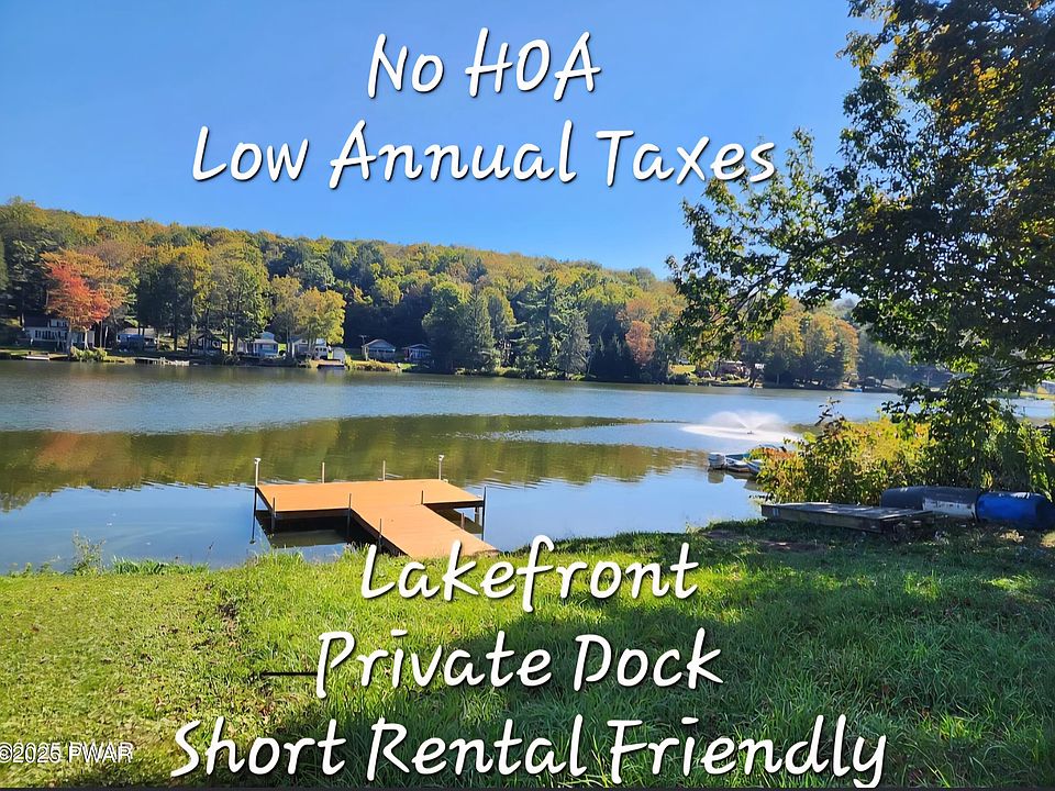 LAKEFRONT home in Acre Lake is ready for a full time, vacation or investor owner to enjoy right away. NO HOA , LOW TAXES and SHORT TERM RENTAL FRIENDLY make this a dream come true for lake lovers. Summers will be the best walking out to the brand new private dock to sit and relax, fish, hop on a paddle boat, jet ski or boat of your choice. Winters will be fun at nearby Elk Mountain Resort for skiing and snowboarding fun! Route 81 nearby makes the drive to this property and to shopping conveniently located yet away from all the traffic in a peaceful and relaxing environment. The mountains, lake and landscape make this a beautiful place to be year round. Open the front door for a breathtaking view of the lake. On this level there is a kitchen with breakfast bar, bedroom, full bath and living area which opens to the deck. Go up the spiral stairs to the loft that is setup as a bedroom and sitting area. The lower level has a lounge area, full bath and bedroom with sliders that open to walk out to the lake. Fresh paint, laminate flooring, a/c from mini split units will make everyone want to stay a little longer. Property will transfer FULLY FURNISHED. This is a good place to start enjoying LAKE LIFE!