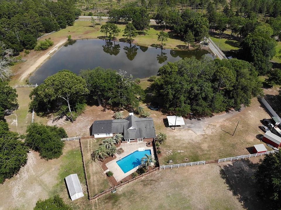 Country Oasis Close to town! Act fast because this one will not last long! This updated home is situated on 11.14 acres and features 4 bedrooms and 3 full baths with POND and 6 stall HORSE BARN! Highlights of this property: 1.) Large Living Room with vaulted ceilings and fireplace 2.) UPDATED flooring throughout! 3.) Open floor plan from the Kitchen and Living Room 4.) Kitchen has LOTS of cabinet storage, bar seating, glass front cabinetry and window overlooking the side yard/ driveway 5.) Off the kitchen is a den which could also service as a playroom OR office. This room has sliding door access to the patio/ pool area 6.) Split bedroom floor plan 7.) This floor plan could also function as two Master Suites 8.) First bedroom is located off the Kitchen and is very nicely sized with walk in closet and private en suite bathroom with tub/ shower combination 8.) Located on the opposite side of the house are two additional bedrooms with updated flooring and ceiling fans! 9.) Master Bedroom is VERY SPACIOUS- plenty of room for a sitting area with French door access to the pool! 10.) Master Suite also features a large walk in closet, his/ her sinks with decorative cabinetry, linen closet, separate tiled shower and Jacuzzi tub! 11.) Outside you will find a separately fenced backyard with a POOL and open patio area surrounded by palm trees- truly your backyard oasis! 12.) Located at the back of the property is a 6 stall horse barn with electricity 13.) Water is run to the pasture for easy access 14.) The entire 11.12 acres is fenced so horses can roam in both the front and back of the property. 15.) The pond is situated in the middle of the tract with a dock access at the front of the house- a great spot for fishing or enjoying the serenity of your home! 16.) Workshop storage building located off the fenced backyard 17.) Double covered parking awning 18.) White fenced lined drive way- a beautiful entrance into the property 19.) Termite Bond 20) USDA- 100% Financing Eligible ! So many features to mention about this property- call today to schedule your private tour of this one of a kind property in Leesburg, Georgia!