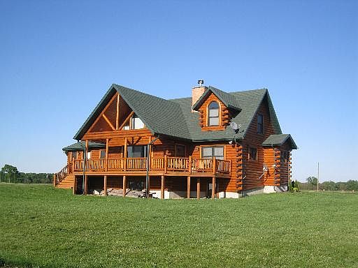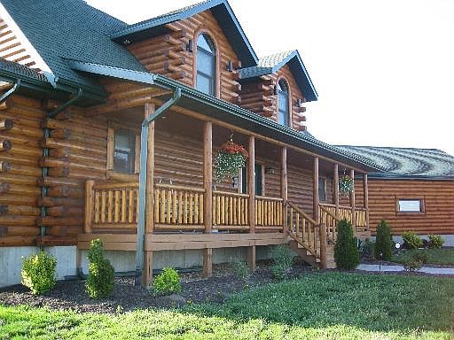 Gorgeous log home with 2.34 acres. Re-stained and shows like new . Priced well below building cost. Beautiul open floor plan. Quartz countertops, hickory cabinets and S/S appliances.Kitchen island w/stone front. 2nd floor loft over looks great room with vaulted ceiling and large windows. F/P with dual blowers.for. aux. heat. All electric home. Views of sunrises and sunsets from porches More acres available