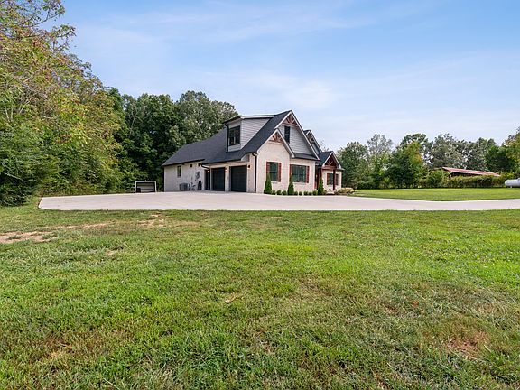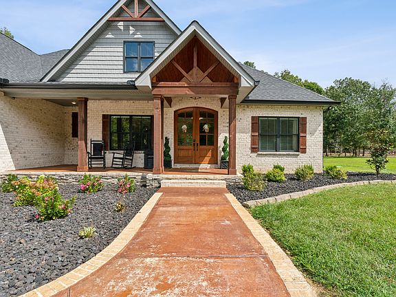 Custom Built Modern Farmhouse in Manchester, an hour outside of Nashville! Jeff Ross Construction (2022) // All-Brick Home // Cedar Columns + Shutters // Mahogany Front Doors Imported From Brazil // 5.04 Acres (3 Wooded w/ Trails Throughout) // 16' Cathedral Ceilings // Indoor + Outdoor Fireplaces // Forno Eight Burner Gas Range // Double Oven // Commercial-Grade Hood // Pot Filler // Dedicated Office Space // Huge Primary Ensuite w/ Free-Standing Tub, Rain Shower, and His + Hers Closets // Custom Windows + Cabinets // Dual Septic Tanks w/ Smart Alert // Gas Grill Line // 240V Hot Tub Outlet // Lava Rock Landscaping // Covered Front + Back Porch // 7-Camera Security System // AND SO MUCH MORE!!