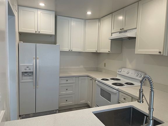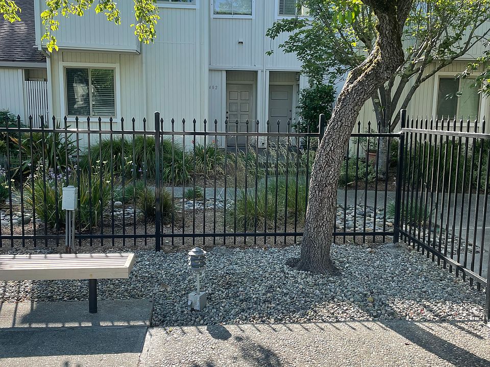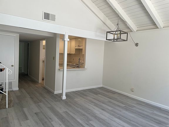Nicely remodeled townhome with high ceiling in spacious living room, freshly painted with new LVT floors and carpet throughout the townhouse. Complete new kitchen countertop, cabinets, new appliances - stove/oven, dishwasher along with refrigerator. Bathrooms are newly updated. Quiet community with 2 assigned carports; garbage and water included. Laundry space upstairs - washer/dryer not included. Newly updated private patio and newly installed central AC.