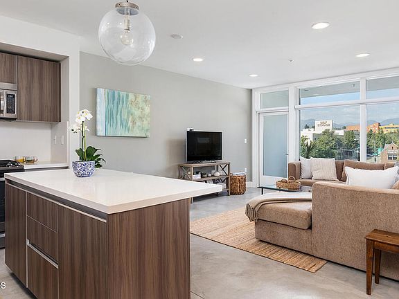 Welcome to this European contemporary condominium located in the exciting Southwest Pasadena urban neighborhood. Built in 2016, this exceptional sophisticated building feels like a lux hotel as you enter the lobby. Finishes in this one bedroom unit includes polished concrete floors, Quartz counter tops in the kitchen including a center island with room for seating, sleek cabinetry and stainless steel appliances, affords the best cooks exceptional size and functionality. Main room includes room for both dining area and lounge all while enjoying excellent mountain and sunset views out of the expansive windows and balcony. The spacious bedroom has a large closet and mountain views. Laundry is conveniently located in the hallway away from the main living area. Excellent storage and coat closet in entry. This unit has been thoughtfully designed affording maximum use of all space. This is a secure building. Amenities include bike racks and charging stations for electric cars located in the subterranean parking garage. Modern living for todays lifestyle. Some of Pasadena's finest restaurants and Whole foods are located on the street. However, the best amenity is the view of the San Gabriel Mountains!