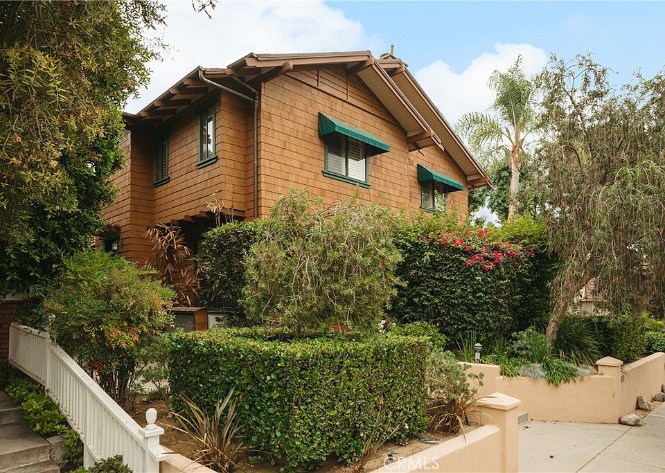 Ideally located on one of the most distinguished, tree-lined streets in Pasadena, this stunning craftsman-style townhome sits in the heart of the highly coveted Madison Heights neighborhood. This end-unit residence offers the perfect blend of timeless charm and modern convenience. The welcoming open floor plan features a spacious living and dining area with wood-like flooring, recessed lighting, a three-way fireplace, and a wet bar—ideal for entertaining. French doors open to a private patio, creating an inviting indoor-outdoor flow. The renovated kitchen is appointed with granite countertops and a farmhouse-style sink. A convenient powder room completes the main level. Upstairs, two generous bedroom suites with vaulted ceilings and double vanities provide comfort and privacy. The primary suite is enhanced by a spiral staircase leading to a versatile loft retreat, perfect for a home office, reading nook, or creative space. The lower level offers a flexible bonus room with laundry hookups and extra storage. This versatile space can be used as a third bedroom or a den, and also provides direct access to the attached two-car private garage. Combining elegance, functionality, and an unbeatable location near South Lake Avenue, Old Town Pasadena, Paseo Colorado, and the Playhouse District, this home offers the best of Pasadena living