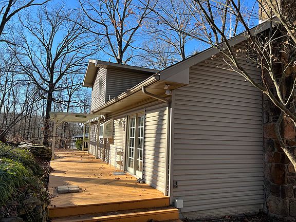 Ozark seclusion. Fabulous mountain views from this Twelve acres surrounding the updated four bedroom home. Massive stone fireplace. The home has a very nice winter mountain valley view. Site goes right up to Government Conservation Land and only about a mile from Table Rock Lake ! Tilden Road dead ends into Tabel Rock Lake! Road to their lane is paved and the driveway to their house is easily traversed. Truly an amazing Ozark gem tucked away in this mature hardwood forest. Four bedrooms and three baths. Two bedrooms basement bedrooms non conforming. Architectural Shingles. Locking gate and yet only 9 minutes from Walmart ! All kitchen appliances stay with home. Real hardwood floors, updated kitchen, light fixtures and that magnificent fireplace with super heavy duty fireplace insert. Lots of fun things in the surrounding yard including Koi ponds and waterfall setups.Enjoy every minute from the time you start down your private tree lined driveway till you sit on your porch to enjoy the peaceful, tranquil Summer evenings. Did I mention the abundant wildlife ? Deer and turkey and.... Better Call for a Showing NOW !!!