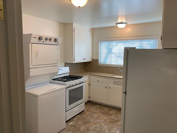 Huge 800 sq ft unit with white oak hardwood floors, lots of light and storage. New appliances including dishwasher and washer/dryer in unit. Pantry in large kitchen. Central heating and a/c, new double paned widows. Covered parking with extra storage. Very comfortable for a couple. Located near Page Mill Rd. and El Camino Real. Showing anytime by appointment. Owner managed.