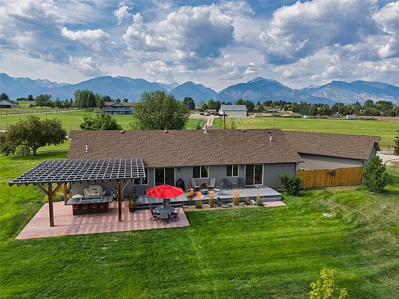 2472 sq ft Rancher meticulously maintained on 9.89 Acres with the N Fork of Cow Creek. Livingroom vaulted ceiling, open concept, large picture windows frame views of the Bitterroot Mtn. Enjoy cool evenings in the living room in front of the cozy gas log stove. 3 bdrm, 2 bath. Bonus room perfect for watching your big TV. Kitchen granite counters, formal dining room & a wonderful back deck to enjoy the view of the Sapphire Mtn. Cooking patio w/craftsman pergola. Impeccably landscaped, drip irrigated perennial gardens & concrete curbing. 1044 sq ft insulated & finished shop w/220 power, 7 1/2 kw electric heater + wood stove. 24'x32' Livestock barn, hay storage & tack room. 14'x16' enclosed mower & tool shed. Field pipe sprinklers supplied from BRID. Underground lawn sprinklers from well. Property is securely fenced for your horses or dogs. Fiber optic internet. Attached 3 car garage & large driveway Producing apple trees. 5 miles from Hamilton Main Street. County road no through traffic.