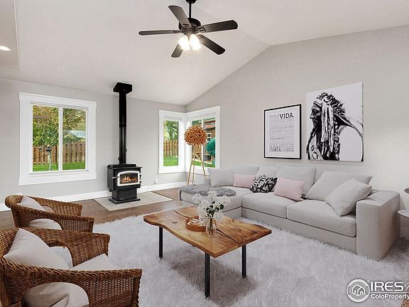 Welcome to your foothills escape, just minutes from downtown Fort Collins. This beautifully appointed 4-bedroom, 3-bath raised ranch offers the perfect balance of comfort, style, and Colorado living at its finest. Step inside to find a bright, open floor plan featuring new energy-efficient windows, fresh interior trim and paint, and new carpet, giving the home a crisp and clean feel. The main level boasts brand new custom 5-panel solid core doors, a spacious living area with a wood-burning fireplace, and abundant natural light. The inviting kitchen provides plenty of counter space, an eat-in area, and a brand new glass door that opens to the Trex deck and patio. The primary bedroom includes an updated bathroom, a large walk-in closet, and a private door to the backyard patio.The spacious basement features a pellet stove, a fourth bedroom, and an updated bathroom. Outside, the fenced backyard offers raised garden beds, a large shed, and a kids' playhouse with a slide. You'll also find space for RV or boat parking and a heated oversized two-car garage with ample storage. Located just a few hundred yards from Horsetooth Reservoir, this home provides immediate access to boating, hiking, biking, and all the outdoor fun you can imagine. Schedule a showing today.