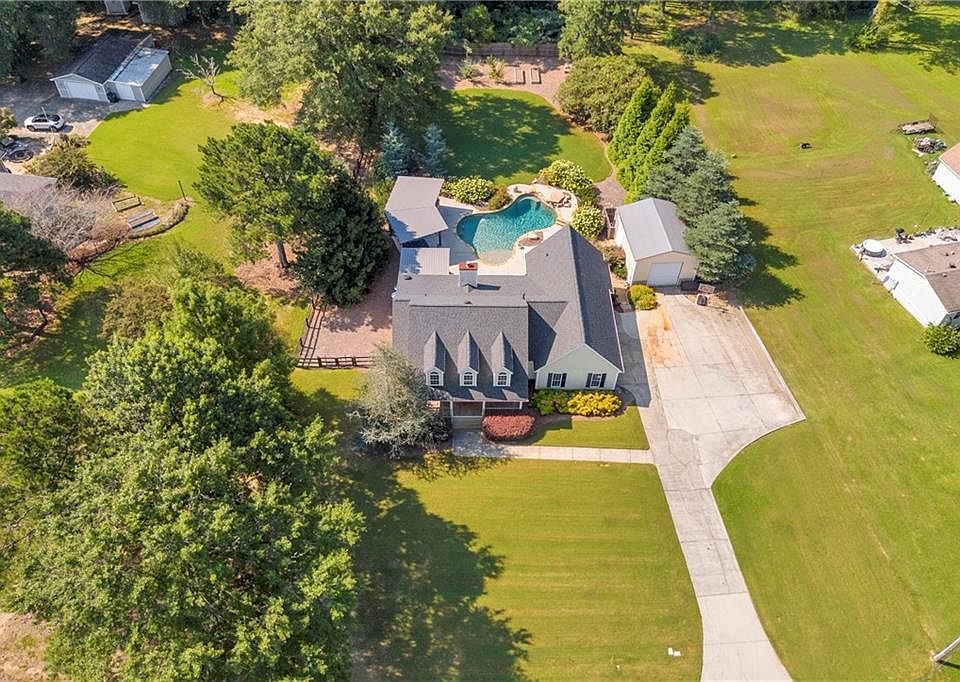 With easy access to Hwy 138 and I-20, this property is close to everything! It sits in the heart of Walnut Grove on a very private 1 acre. The home has been lovingly upgraded and features a split bedroom plan, island bar seating, wood shelved pantry, flex room, upgraded master bathroom, and eat in kitchen that leads to backyard paradise! The backyard includes an outdoor kitchen, half bath for pool guests, in ground pool with underwater stools and tanning shelf, garden area with raised beds, screened in porch with grilling station, covered back deck, firepit, and detached garage with so many uses!