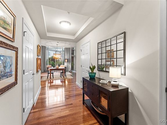 Welcome to luxury living, resort-style atmosphere in the prestigious condo! This impeccably maintained second floor unit exudes modern elegance and offers a light-filled sanctuary with panoramic views with natural light through large windows that illuminates the beautiful hardwood floors, creating an inviting ambiance from the moment you step inside. The kitchen with custom cabinets, granite countertops, and a stylish backsplash, along with top-of-the-line appliances with the open-concept living and dining areas. The spacious one-bedroom has extra space for a sitting area or home office and a large ensuite. Another full bath for convenient guests. Step out onto your private patio from the living room, ideal for enjoying morning coffee or evening cocktails while taking in the scenery. Indulge in resort-style amenities including two saltwater pools, a 24-hour secured fitness facility, volleyball court, and access to the marina on the James River. Take advantage of the vibrant neighborhood, with popular dining destinations such as Stone Brewing Tap Room, Triple Crossing Brewery, The Island Shrimp, and The Boathouse just a short stroll away. Plus, with the Capital Trail conveniently located behind the building, you'll have easy access to biking, jogging, or leisurely walks to explore more of RVA's attractions. Don't miss your chance to experience this condo which provides the perfect balance of urban convenience and resort-style living at Rocketts Landing!