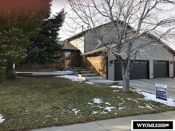 Fantastic four-level home on Casper's west side. Four bedrooms (1 non-conforming), three and one half baths and a large three car garage. Wonderful curb appeal with a 12,800 sq. ft. lot with an automatic sprinkler system mature landscaping and a fenced yard with magnificent moutain views and spectacular Wyoming sunsets. There are two bonus areas 11' x 34' with one attached to the third level 17' x 34' family room with a pellet stove insert. The second is attached to the 12' x 24' master bedroom.