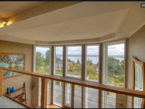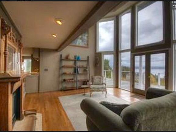 One of the most AMAZING views on the island! Beautiful sunny, open space for gardening & lawn games. 3.5 acres. Great home for entertaining! Brand new roof and deck! Soaring ceilings and walls of windows frame the Mt. Rainier view. Massive brand new deck with a 180 degree view of the Sound and stairs on either side for easy access. The entire third floor is a brand new modern Master Bedroom Suite with an amazing view of the sound, and a deck right off the Master. The luxury bathroom includes a wet space with a free standing elegant Italian gold and black soaking tub included within the shower space. Black quartz countertops and two large Italian gold and black pedestal sinks matching the tub completes the master bath.The entire third floor also includes oak floors and a laundry room. The second floor (or main floor) has all brand new windows to view the sound snuggled in a cozy leather sofa)., There is also a bar and reading nook, a wonderful kitchen with of course another large window to view the sound. Toward the rear of the second floor is a large dining room, with a sliding glass door on either end. This main floor has all oak floors. The top floor has three additional bedrooms, a large open space for a game room and a side space for office use. Huge brand new light gray fibreglass deck, and a brand new outside paint job of pale blue with white trim. The lower level has space for garages in addition to a room formerly used as a recording/sound studio and can also be used as an art studio. Attached garages for storage and cars. Walking distance to lighthouse/marine parks