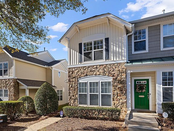 Welcome to this beautifully maintained end-unit townhouse in the sought-after Glenwood North Townhome community of Northwest Raleigh. The townhouse is move in ready! Step inside to a light-filled main floor featuring an open living space anchored by a cozy gas fireplace—perfect for relaxing evenings or entertaining guests. The kitchen shines with crisp white cabinetry and opens into a generous dining area. Upstairs, each of the two comfortable bedrooms boasts its own private bath and walk-in closet a convenience rarely found at this price point. As an end-unit, the home benefits from enhanced privacy and additional windows. The rear patio overlooks mature trees, creating a peaceful outdoor retreat without the upkeep of a large yard. Two open parking spaces are included, along with access to community amenities such as a pool, fitness center, and clubhouse. The location is a standout: minutes from RDU International Airport, NC State, Rex Hospital, Research Triangle Park, North Hills, Brier Creek, and I-440, with shopping and dining options nearby. Recent updates add value and peace of mind, including a new roof (August 2021), a UV light system in the air handler for air sanitation, and refrigerators, washer, and dryer included with the sale
