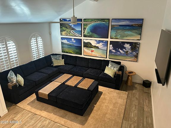 INSIDE, fully remodeled, 2-story, 2 air-units. Upstairs 4 BR (3 king, 1 queen), 2 bath. Downstairs LR, FR, KIT, DR, office, 1/2 bath, laundry. Tile with area rugs, new furniture. Mattresses Tuft & Needle, couches Lovesac. LR large sectional, theater sound. Large TVs in LR, FR, MBR.