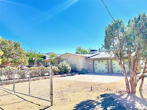 This charming Chloride gem is move-in ready. This corner lot has 0.41 acres. Stick built 2 bedroom/2 bath home with a sun room. 1,030 sq ft of living space with a 624 sq ft attached 2 car garage. Large RV port with hookups. Central heat and air. Front and back yard has chain link fencing and mature landscaping. Pomegranate,, fig and grape vines. Property has its's own well. If buyer is interested, majority of furniture may stay.