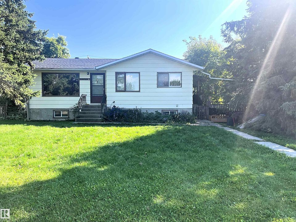 This one needs a little love. Here is a 3 bedroom, 2 bathroom, 1128 +/- sq ft home located in Wildwood on a triple lot! Upstairs has 2 bedrooms, 1-4pc bathroom, living room, dining room, kitchen and laundry area. Downstairs has a family room, 1 bedroom, 1-3pc bathroom, utility room and a storage/cold room. Upgrades include a new roof, HWT, master bedroom window, flooring in the living room & hallway and a Chain Link fence on the South & West side with a double open gate.Outside has a huge yard on 3 lots, covered deck (levelled in 2022), ramp on the west side of home, plum trees, choke cherry trees, rhubarb, sm raised box garden bed, shed and lots of room for whatever you please.