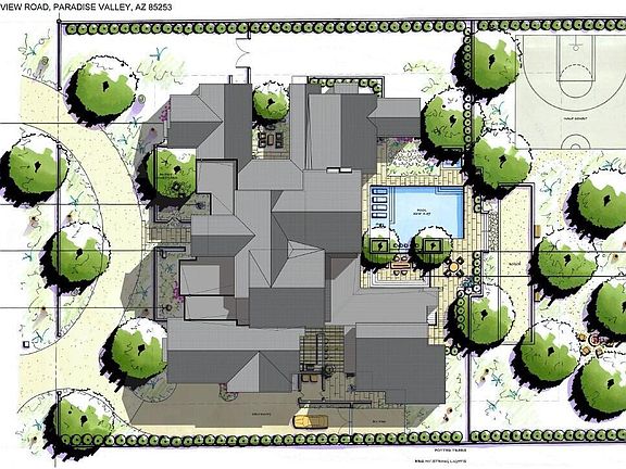 The approved plans include a massive 4 car garage/storage area spanning 1,392 square feet. There is close to 2,000 SF of covered patio/porch area which adds to the vastness of the property.The landscape plan includes a semicircular driveway with dual electric gates, a large rectangular swimming pool, detached spa next to the master bedroom, sport court, and bocce court. Connecting the main residence and guest quarters is a custom semi-covered BBQ area capable of having multiple grilling appliances with window-serving available directly to the main house and guest quarters.