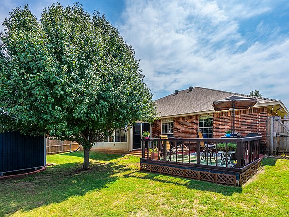 WELCOME HOME!!! Beautiful 4 bedroom home in Moore schools. Situated on a dead end street so no traffic. Inviting fireplace in living room. Kitchen has double oven for great convenience. Refrigerator is less than 6 months old. Lots of cabinets and counter space and even a pantry. Bar eating area for lots of bar stools. Perfect mother-in-law plan for privacy. Second living area has been made into an awesome theater room. Fenced backyard has a deck for entertaining. Storm shelter in garage for safety from spring storms. Come see this home and make it yours before the holidays!!!