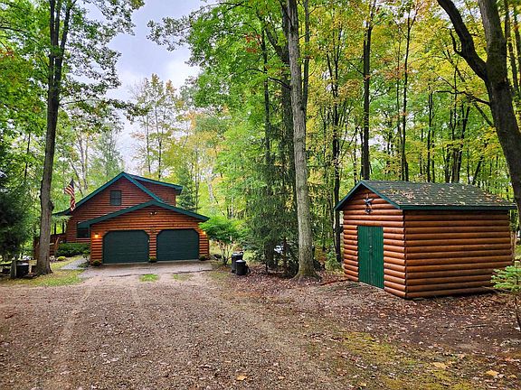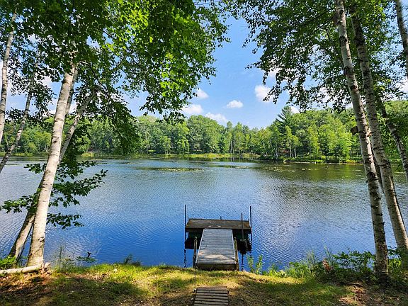 Beautiful 4-bedroom, 2-bath home built in 2000 with an attached 2.5-car garage and storage shed. Offering approximately 1,914 sq ft of living space plus a 1,276 sq ft unfinished basement, this home features a bright, open floor plan with a loft and stunning cathedral ceilings. The main floor includes 2 bedrooms, a full bath, laundry area, and an open-concept kitchen, dining, and living room. Two sliding doors lead to the wrap-around deck—partially covered—perfect for relaxing and taking in the serene views. Upstairs, you’ll find 2 additional bedrooms, a full bath, and a loft overlooking the main living space. Sets on 2 spacious lots totaling 1.65 acres, the property offers 234 ft of frontage on a quiet, no-wake lake with electric motors only—ideal for peaceful lake living. The half-log exterior and expansive deck creates a warm, lodge-like feel with panoramic views of the woods and water. Located within the White Birch Recreational Association, dues are just $440/year and include access to an indoor heated pool, sauna, WiFi lounge with lake views, game room, mini golf, and courts for tennis, pickleball, and basketball. Members also enjoy three other private lakes (two with sandy swimming beaches), stocked fishing, a gated entrance, a private campground with hookups, a playground, pavilion, bathhouse, plus miles of trails for biking or ORVs. This property combines year-round comfort with resort-style amenities—schedule your private showing today!