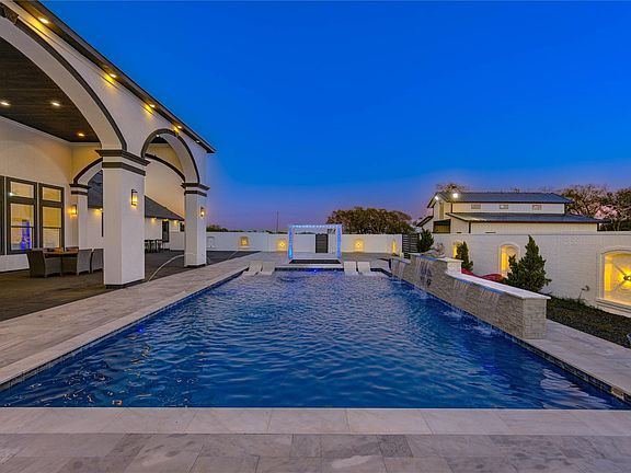 Floor-to-ceiling fireplaceSparkling resort-style poolSpa-inspired retreatCovered patioResort style oasisExquisite marble flooringOversized walk-in shower