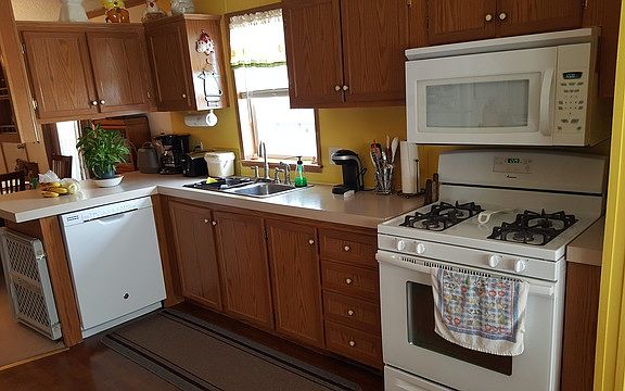 Beautiful 3 bedroom home with 2 full baths. Many built ins and a lot of the furniture is staying. Spacious living room with formal dining room. Master suite has walk in closets and bath. Corner lot for great location. Community clubhouse has many activities. Crafts, bingo, shuffleboard, cards and gold course. Room sizes are approximate please measure. Lot size is approx.