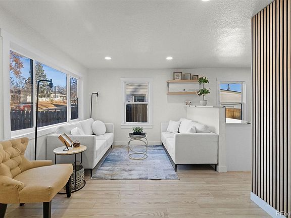 Step inside and discover a beautifully reimagined three-bedroom, two-bathroom home that lives bright, modern, and effortlessly inviting. The main level welcomes you with an open layout drenched in natural light, where the living room connects seamlessly to a designer kitchen. White cabinetry, stainless steel appliances, quartz countertops, and a striking Basalt Dolomite Geo Mosaic backsplash create a clean, contemporary feel that any home chef will love. Just off the kitchen, the dedicated dining room feels special with oversized windows and a custom walnut fluted wood-panel accent wall—a true statement moment. A generous secondary bedroom (ideal for guests or a home office) and a full bath with a marble-tiled shower complete the main floor. Head downstairs to the lower level and you’ll find a private primary retreat designed for comfort. Custom built-ins maximize space, while the large closet and stylish 3/4 en-suite add function and luxury with hexagon marble mosaic flooring, a double vanity, and a quartz step-in shower. Outdoor living is made easy in the fully fenced backyard, offering mature landscaping, privacy, and plenty of room to make it your own. A small shed provides convenient extra storage. Perfectly situated just minutes from lakes, parks, and trails, the location offers endless ways to enjoy the Colorado outdoors. Prefer city energy? Downtown Denver is only 10 minutes away, with quick access to DTC and DIA—both about 30 minutes from your front door. Bonus: Our preferred lender is offering a complimentary 1-0 temporary rate buydown for qualified buyers—exclusive to this property. Ask for details!