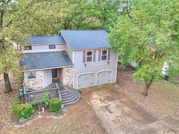 Don’t miss your chance to own this beautiful tri-level home in a quiet location just south of Sand Springs! Easy access to Highways 97 and 412, Tulsa, and Sapulpa. Set in a serene & wooded area with nearby park and great neighbors, this cozy home is located toward the back of the neighborhood, offering you privacy and peace. You are greeted by a large partially covered front porch deck, vaulted ceilings, open plan, gas log fireplace, and screened in back patio/deck. Inside you’ll find the kitchen and eat-in area adjacent to the living room. It’s just a few steps up to the bedrooms, the primary bedroom having 12' vaulted ceiling and its own bathroom suite. The screened in back patio/deck is ever so cozy and perfect for morning coffee or evening beverages, while you enjoy views of the huge shady backyard full of mature trees! The attached garage has storage/work area, partial basement & additional washer/dryer hookups. And to top it off, it has a 16'x20' shop with concrete floor and garage door, big enough to house all of your projects. HVAC is approximately one year old and the roof is only three years old. Come tour this one before it’s gone!