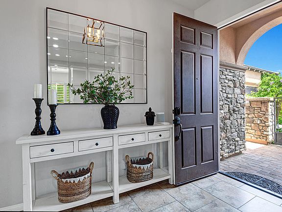 Welcome to the Bridge at Jefferson community, where immaculate surroundings showcase a true pride of ownership! This stunning 4-bedroom, 3.5-bathroom home, complete with a private guest casita, sits on a prime corner lot with no homes directly across the street, ensuring privacy and tranquility. From the moment you arrive, the instant curb appeal captivates you; lush landscaping, an extended paver driveway and walkway, an elegant wrought iron gate create a warm yet sophisticated welcome. Inside, the open-concept floor plan seamlessly blends functionality and style, offering ample storage throughout. The great room showcases a striking stacked-stone fireplace feature wall, creating a cozy yet modern ambiance. The gourmet kitchen is a chef's delight, featuring granite slab countertops, crisp white cabinetry, stainless steel appliances, double ovens, and a spacious dining nook that comfortably accommodates an eight-person dining table. The kitchen is also complemented by a stylish butler's pantry, perfect for entertaining prep and extra storage. The formal dining room is currently used as a flex room, designed as a stylish bar with wine and beverage coolers, boasts marble slab countertops, accompanied with marble accent wall, and a color-changing LED backlit wine rack - an entertainer's dream! Additional interior highlights include upgraded ceramic tile flooring in main living areas, plush carpeting in the bedrooms, and elegant plantation shutters throughout, adding warmth and sophistication. The primary suite is a luxurious retreat, offering a sizeable walk-in closet, private backyard access, and a spa-inspired bathroom with travertine countertops, a walk-in shower, a large soaking tub, and dual vanity sinks. Step into the backyard retreat, where a covered entertainment patio invites you to relax and enjoy the majestic Southwest Mountain views, surrounded by a meticulously maintained privacy hedge with lush landscaping. With ample space for a pool, this outdoor oasis offers endless possibilities. This immaculate home is a true gem, meticulously maintained and designed for both comfort and entertaining. There is plenty of space in the 2.5 car garage with suspended storage racks and pre-wired for an EV charger. Enjoy a warm, friendly neighborhood atmosphere with low HOA fees and convenient location - making it the perfect place to call home! Don't miss your chance to experience it in person - you won't be disappointed!