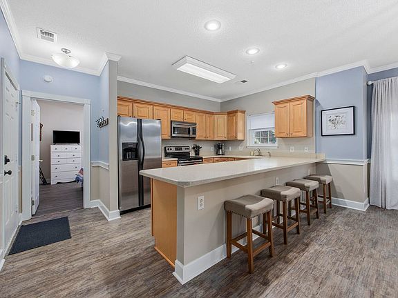 - Features: Breakfast Bar, Stainless Steel Appliances, Solid Surface Counters