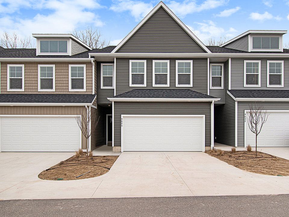 This interior condo features a generous 1,800 sq ft layout, including 3 bedrooms, 2.5 bathrooms, an attached 2-car garage, and a 10 x 10 deck adjacent to the dining area. Additionally, there is an upper-level laundry and storage room. Interior finishes will include quartz countertops, kitchen tile backsplash, pantry, LVP flooring throughout the main level, and a complete kitchen appliance package. Enjoy community amenities which include an outdoor pool/hot tub, clubhouse with fitness center, tennis court, playground, pond and walking trails.