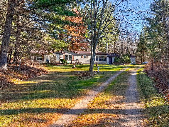 Tucked among towering trees down a winding private drive, this 3BR 2.5BA home sits on 7.5 wooded acres just minutes from Lake Winter. Inside, the large kitchen features an island & snack bar w/seating, ample counter space & charming glass-accent cabinetry. A bright formal dining area pairs with an addl dining space near the living room for flexible mealtime options. The primary BR offers an en suite layout, and the spacious living area provides a cozy wood fireplace. Recent improvements: new furnace (2024), metal house roof (2022), skylights removed), well pump (2020), updated windows, new refrigerator & washer (2025), & newer breezeway roof. The land offers a peaceful setting with mostly high ground & plenty of room to roam, relax, & explore. Outdoor enthusiasts will love being close to the Lake Winter boat landing, nearby restaurants, & only a half mile from thousands of acres of public land in open MFL. A comfortable Northwoods retreat with room for your adventures to unfold!