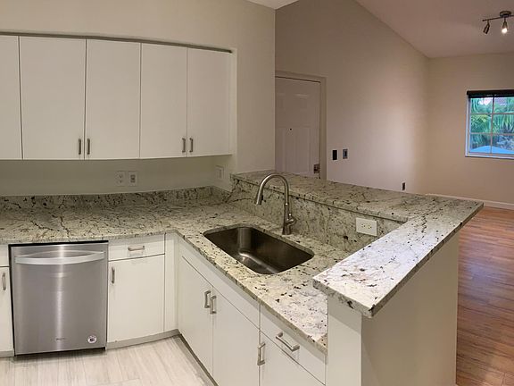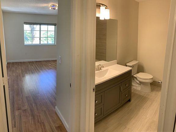 BEAUTIFUL and spacious 1bed/1bath apartment in highly desired and gated Carrington community, Coconut Creek. New bathroom, renovated kitchen with stainless steel appliances. Amenities include a community pool, hot tub, fitness center, children's playground, tennis and indoor racket ball. A rated schools, Sawgrass Expressway, Turnpike and The Promenade with its many restaurants and shops at walking distance. 15 minute car ride from the beach. This cozy apartment is a corner unit on the top floor and has vaulted ceilings (no neighbors upstairs!). It is freshly painted, has laminate wood floors throughout and is ready to move in. The rent includes water and a valet trash pickup. The apartment has reserved parking for 1 car, guest parking available for up to 14 days. Security deposit, first and last month required to move in.