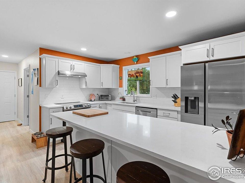 NO HOA! 5 bed/3 bath home on a half acre lot, with an out of town feel, while still having the convenience of Fort Collins and Timnath! Oversized 2 car garage, large detached shop and access to enjoy swimming, fishing, boating, hiking and more at the PRIVATE Baker Lake just minutes away! Newly remodeled in 2023 with a gorgeous kitchen boasting quartz counters, new white cabinets, stainless steel appliances and a large island perfect for entertaining! All bathrooms also got new cabinets and quartz countertops and a new water heater installed this year. Finished basement has a large rec room, fireplace, and tons of storage. The backyard oasis offers a huge yard with tons of room to play and entertain, covered deck, large shop, vegetable garden, 2 apple trees and 1 cherry tree! Front yard also has a new low water perennial garden. Easy access to I-25, shopping, dining and Old Town Fort Collins!