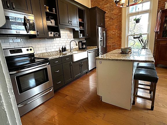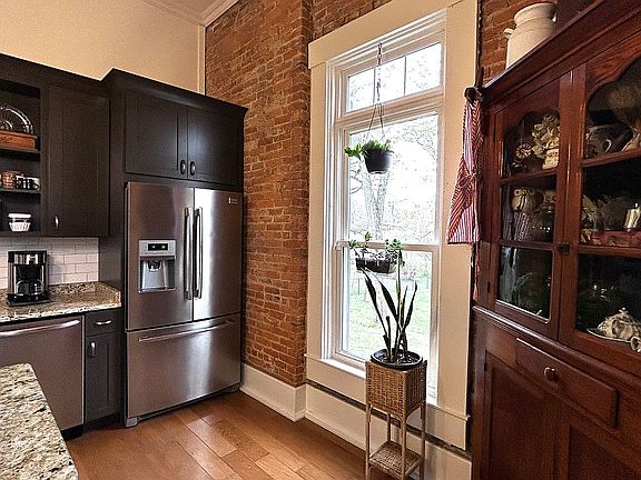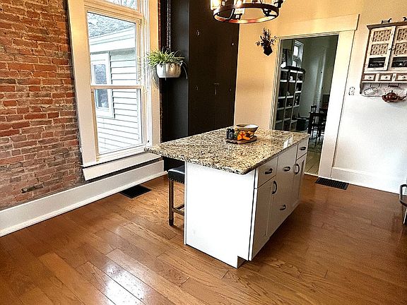 Inside you will find beautiful exposed brick, hardwood floors, 12ft ceilings, and large windows that provide plenty of natural light. Fresh paint throughout the home, three nonworking fireplaces, and a pellet stove that will bring a cozier, warmer winter.