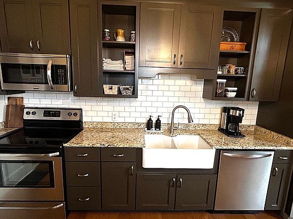 Downstairs features a large mud room/laundry room, a full bath, one bedroom, dining room, and living room. The kitchen is the star of the show with recently updated cabinets and appliances, quartz countertops, exposed brick, and beautiful afternoon and evening sun.